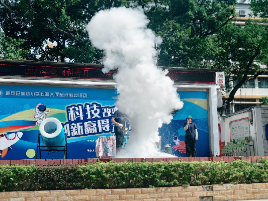 在物理实验区,经典项目以创新形式呈现。马德堡半球实验中,两个直径30厘米的半球在抽真空后,需八名以上学生合力才能拉开,直观展示了大气压强的惊人力量。塑料袋火箭项目则融入流体力学教学,学生通过调整袋口形状与充气量,探索反作用力与飞行轨迹的关系。氦气语音实验区,学生们吸入氦气后发出卡通音效,在欢笑中理解声波传播介质对频率的影响。液氮实验区,-196℃的液氮与热水碰撞瞬间腾起的白色云雾,配合辅导员对超导材料与低温物理的讲解,将课堂知识转化为可视化的科学奇观。