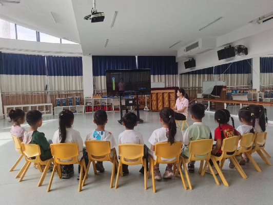 视频结束后,老师结合动画片段,用浅显易懂的语言向孩子们讲解闪电的危害——不仅会击穿物体、引发火灾,还可能对人体造成伤害。随后,重点教授躲避闪电的正确方法:雷雨天气时不能在大树下、电线杆旁停留,不能拿着金属玩具在户外奔跑,要尽快回到室内并关好门窗;若在户外来不及躲雨,需双脚并拢蹲下,避免成为“接闪器”。老师还通过情景问答互动,让小朋友们模拟“雷雨来了怎么办”,进一步巩固避险知识,确保每个孩子都能牢记注意事项。
