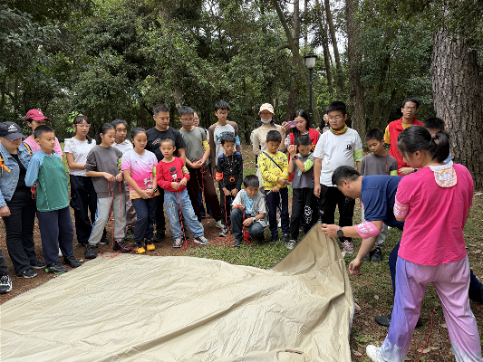 这一天,孩子们徒步爬上陡坡,稳稳握住绳索与工具搭建一个牢靠的庇护所,他们褪去娇气添了底气,变得更独立、坚韧,这些在自然中积累的经验与品格,将不断丰富他们的成长维度。