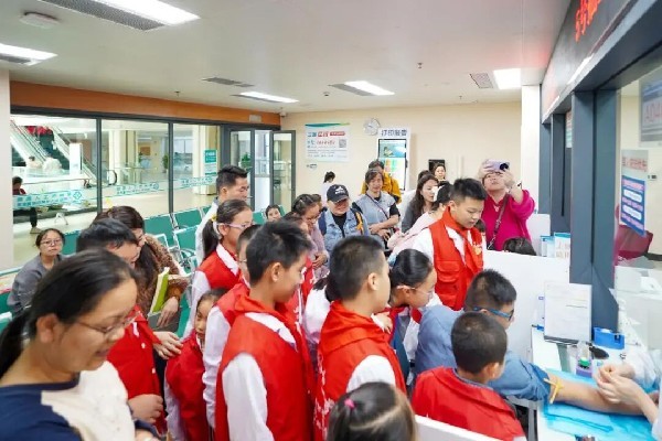 活动现场,30余组家庭分成两组交叉参观研学。第一站走进医学检验科,孩子们在医护人员的讲解下认真了解采血的全过程和步骤,不少孩子感叹:“原来采血并不可怕,还能让我们更了解自己的身体情况!”