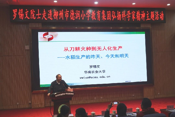 未来的农业场景,拖拉机没有驾驶室,农业生产的所有环节都实现机械化,农民不用弯腰插秧少受累……1月15日,中国工程院院士罗锡文走进柳州市德润小学开展弘扬科学家精神专题讲座,为师生描绘了一幅现代农业的智慧化发展蓝图。